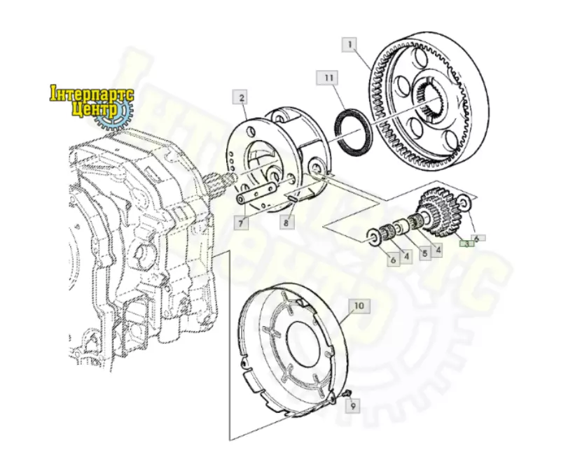 Шустерня двигуна техніки John Deere. Кількість зубів: Z46/32/24.