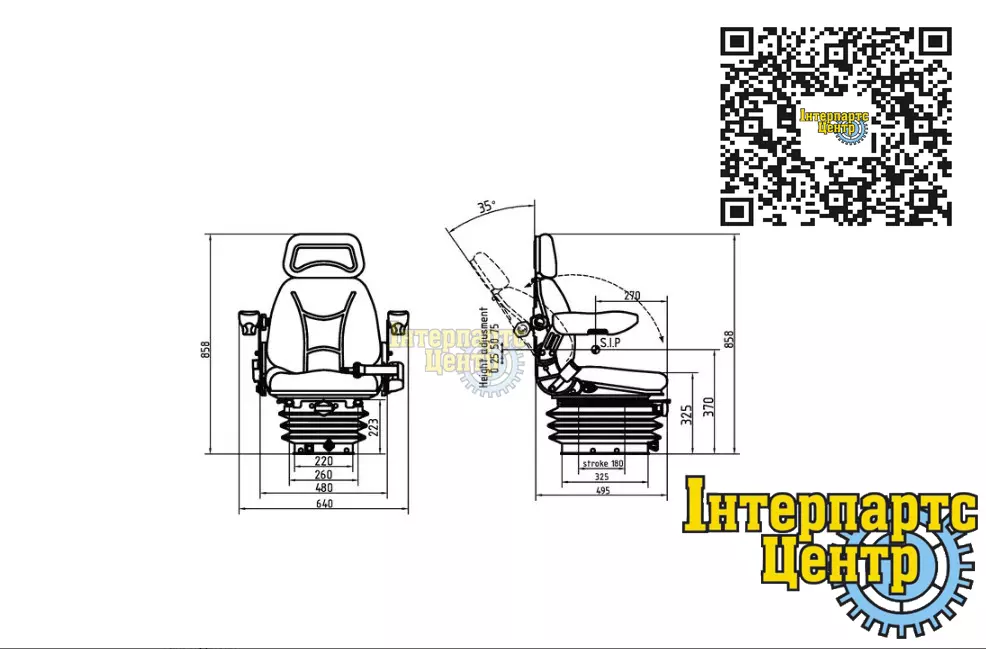 Сидіння механічне (універсальне) підходить як для тракторів так і для навантажувачів.