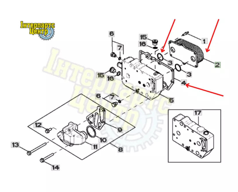 Радіатор охолоджуючого масла + комплет прокладок трактора John Deere.