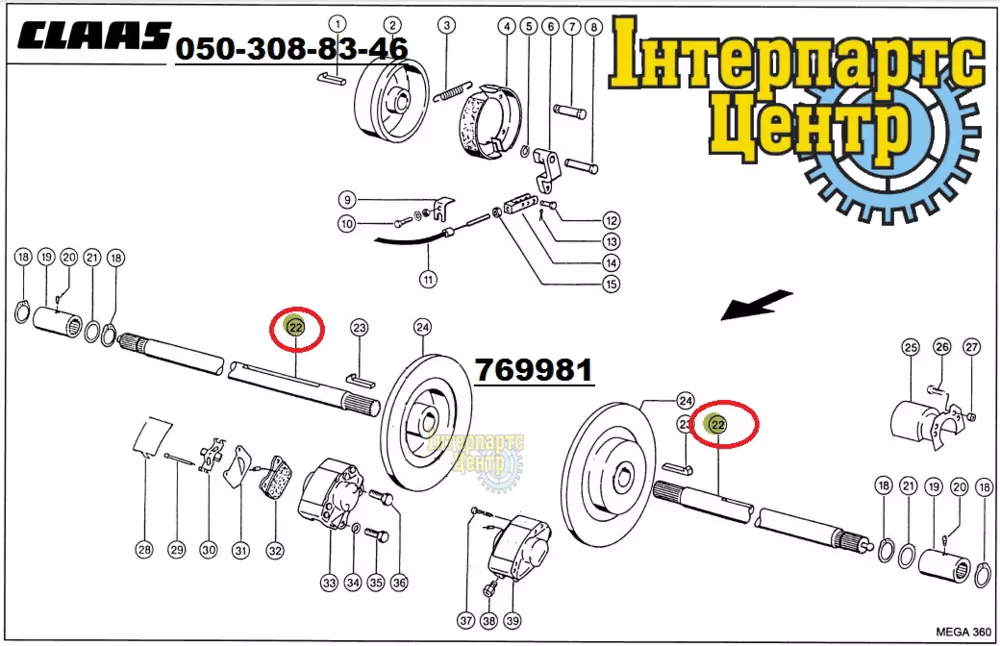 Вал проміжний тормоза 769981.1, 0007699811, CLAAS